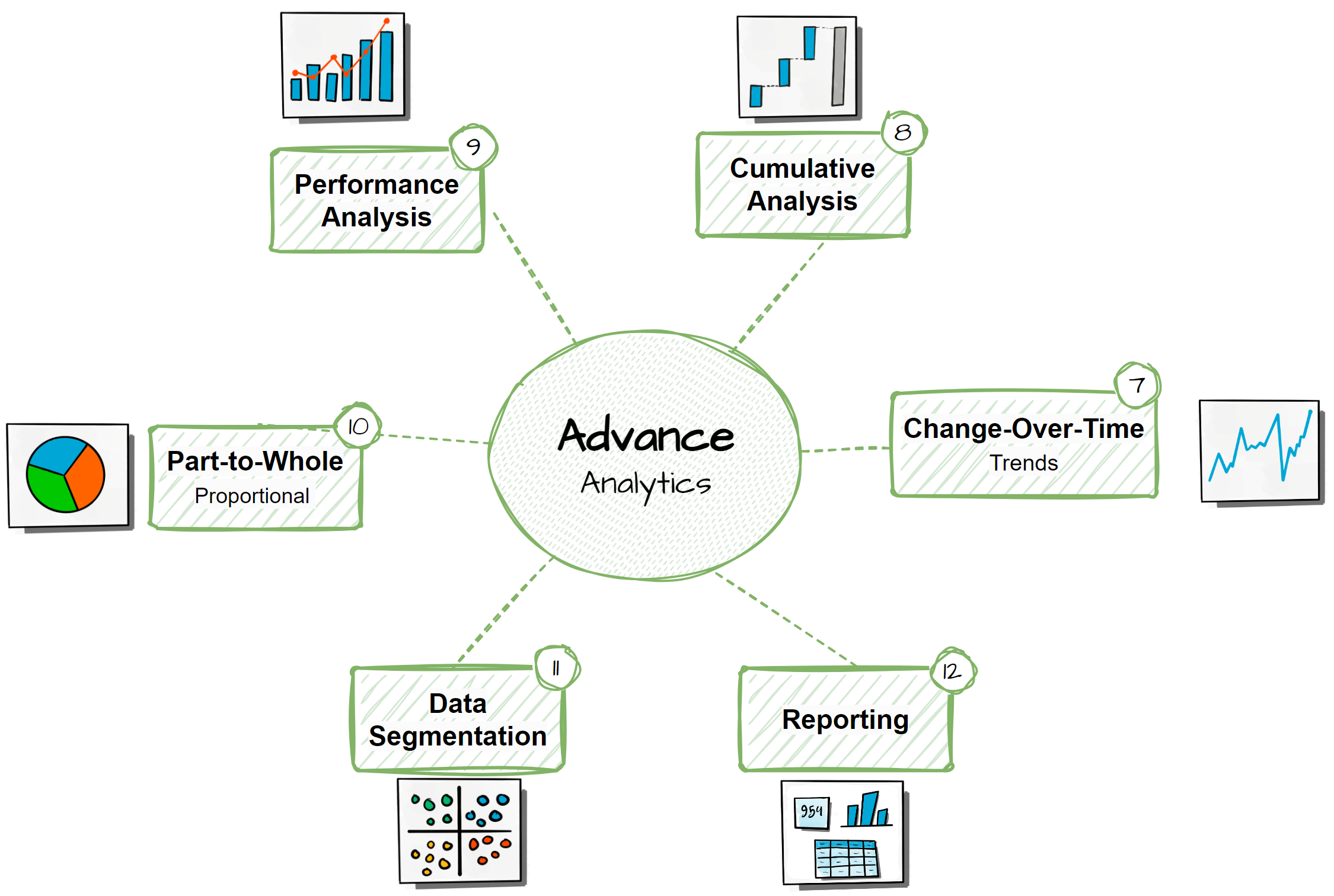 The best way to get comfortable with data analytics is by doing. No matter the domain—HR, Sales, Manufacturing, or any other field—you can apply different types of analysis to uncover insights. Here are some key types of analytics and the SQL techniques to master them: